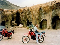 Gerade noch rechtzeitig vor der Flut durchqueren wir wieder die Grotte zu unserem Steinstrand zurück, wo unsere Moppeds oben auf uns warteten; eine halbe oder eine Stunde später wäre das wohl nicht mehr möglich gewesen, da dann die Höhle unter Wasser gestanden hätte. Und ganz ohne Proviant auf die nächste Ebbe zu warten... grauenhaft, diese Vorstellung!